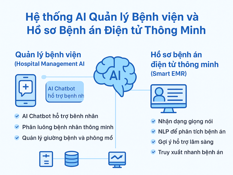 • AI Chatbot hỗ trợ bệnh nhân: đặt lịch khám, hỏi đáp cơ bản.