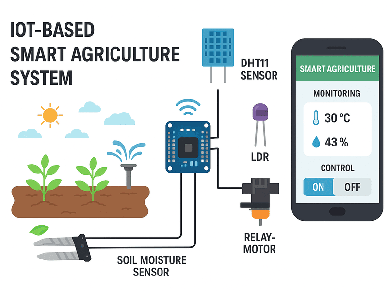 - Dữ liệu được gửi lên Cloud IoT Platform (Blynk/ThingsBoard) để nông dân giám sát qua smartphone hoặc máy tính.